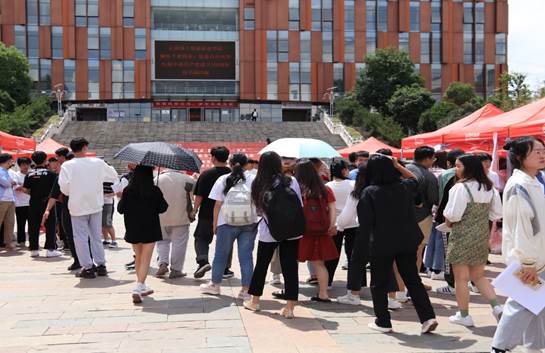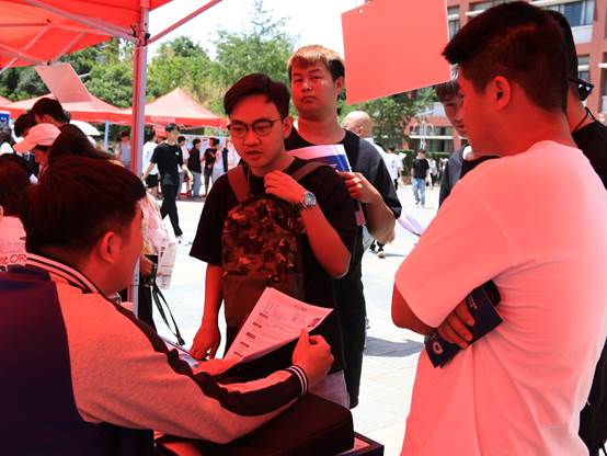 会后,33家企业分别在国土广场相应展位进行一对一面试工作,现场人头攒动,气氛热烈。同学们结合用人单位岗位需求、自身职业规划等,同企业招聘负责人进行面对面交流。张俊妍院长和王春莲书记分别到现场了解招聘情况,并鼓励学生积极投递简历,把握就业机会。