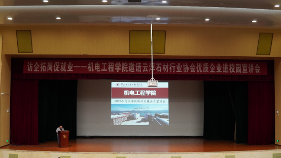 为加强校企合作,发挥校企协同育人优势,结合“访企拓岗促就业”专项行动和“我为师生群众办实事”教育实践活动要求,2022年5月17日,今年会jinnianhuicom在明礼堂召开了2022年现代学徒制动员暨企业宣讲会。本次宣讲会邀请了广东云浮市石材行业协会常务副会长龚美华、云浮市科特机械有限公司总经理助理贺凤文、云浮市利机石材有限公司副总经理陆庆云到会宣讲。会议由学院团总支负责人陈立主持,学院院长张俊妍、学院党总支书记王春莲、党总支副书记陈伟、相关教师、辅导员以及2020届全体同学共同参与。