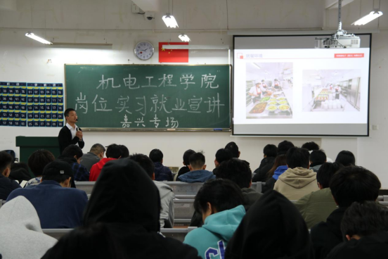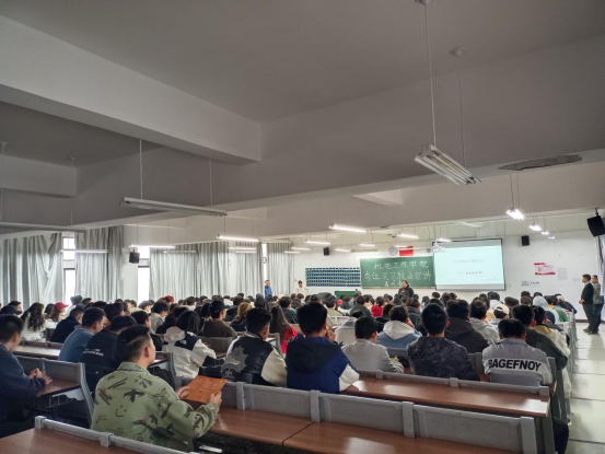 四家企业通过视频与PPT相结合的方式分别对企业背景、食宿环境、薪资福利、企业优势等进行了详细介绍,表明了本次宣讲会的人才需求。在场学生认真听了企业的介绍后对工资、工作环境、具体工作内容等进行了提问,部分同学还积极投递了简历,并进行了现场面试。