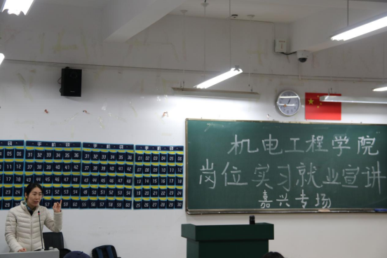 浙江省嘉兴市秀洲区大学生服务中心郑义婷围绕嘉兴实习就业环境、既往实习就业学生风采、权益服务和就业政策等方面进行了详细讲解,并表明嘉兴大学生服务中心将通过实际行动保障学校在企学生的合法权益,为在企学生做好系列服务工作。