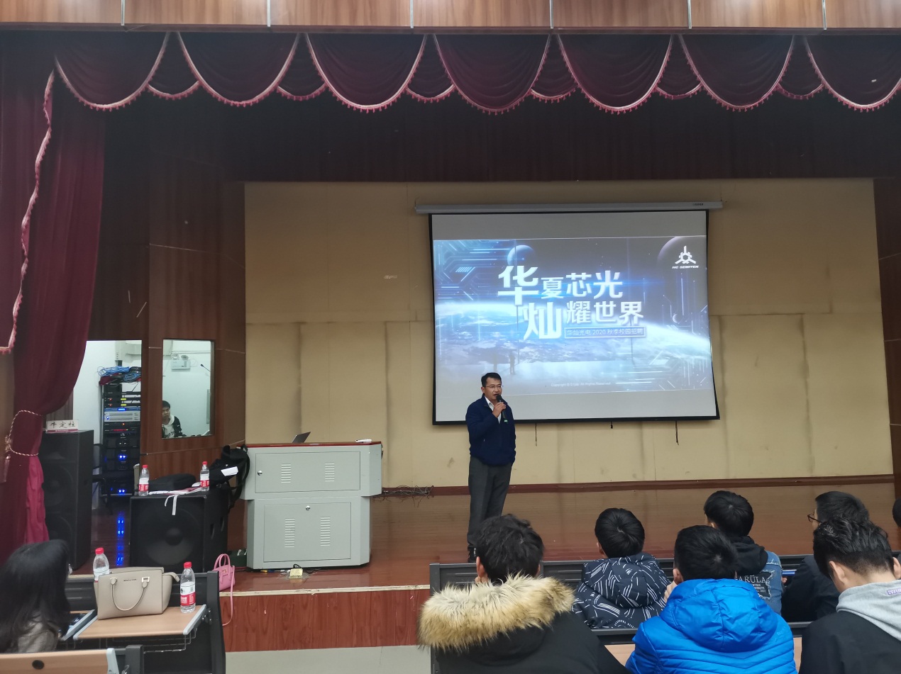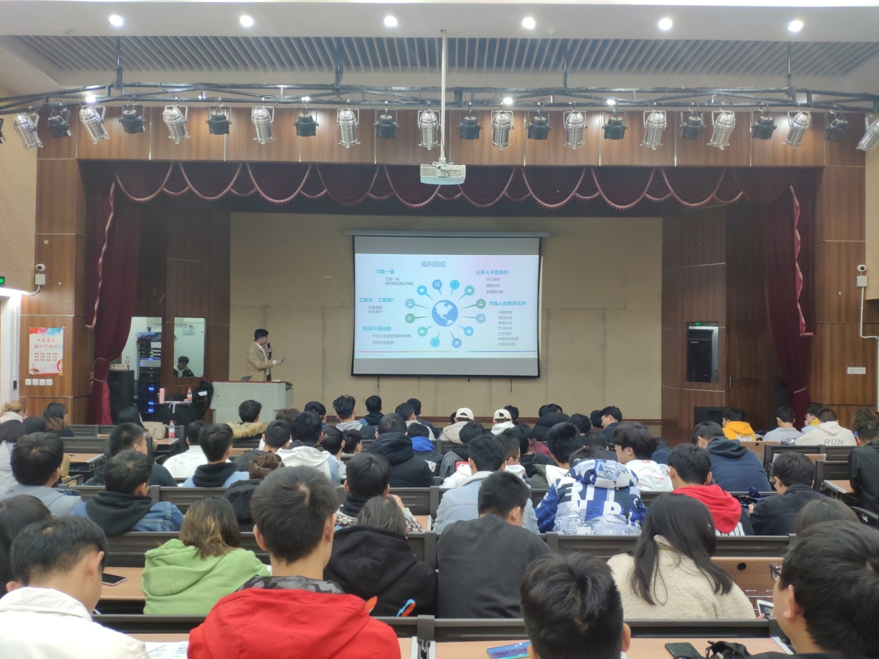 首先,副院长张俊妍对两家企业的到来表示欢迎和感谢,随后,义乌市东方日升和华灿光电两家企业代表进行校招宣讲,两家企业主要从播放企业宣传片、企业发展历程、企业荣誉、主营业务、工作和生活环境、岗位需求、入职待遇、员工福利以及晋升渠道等多方面向同学们详细介绍,并针对现场同学们提出的问题进行现场解答,让同学们更充分的了解了企业的具体情况。接着,义乌市就业创业管理服务中心陈胜老师,就义乌城市环境、就业政策和创业政策等方面对同学们进行详细讲解。最后,张俊妍老师向同学们分析了东西部工业发展现状,希望同学们出省学习,增长见识,拓宽知识面,学习省外先进技术。