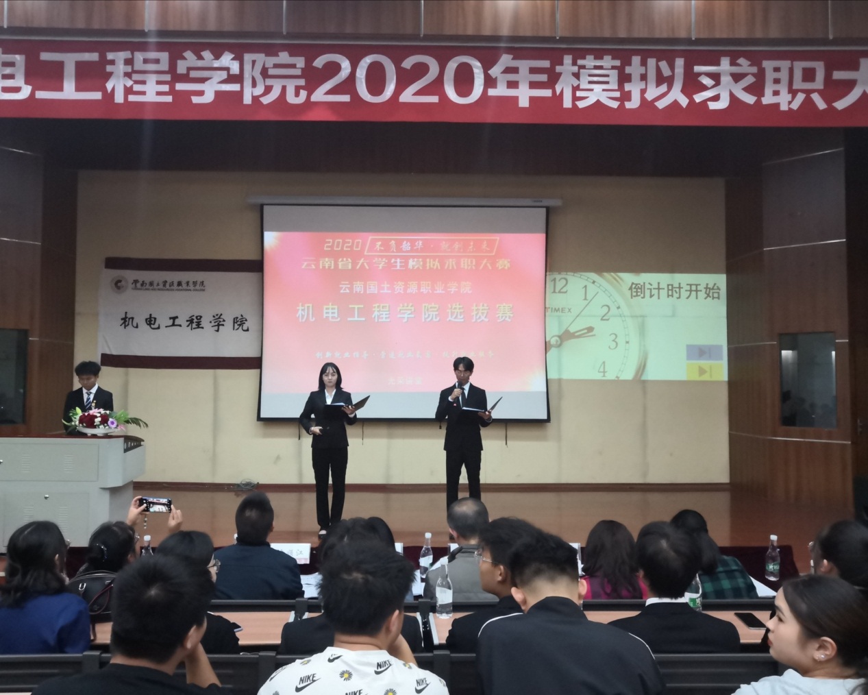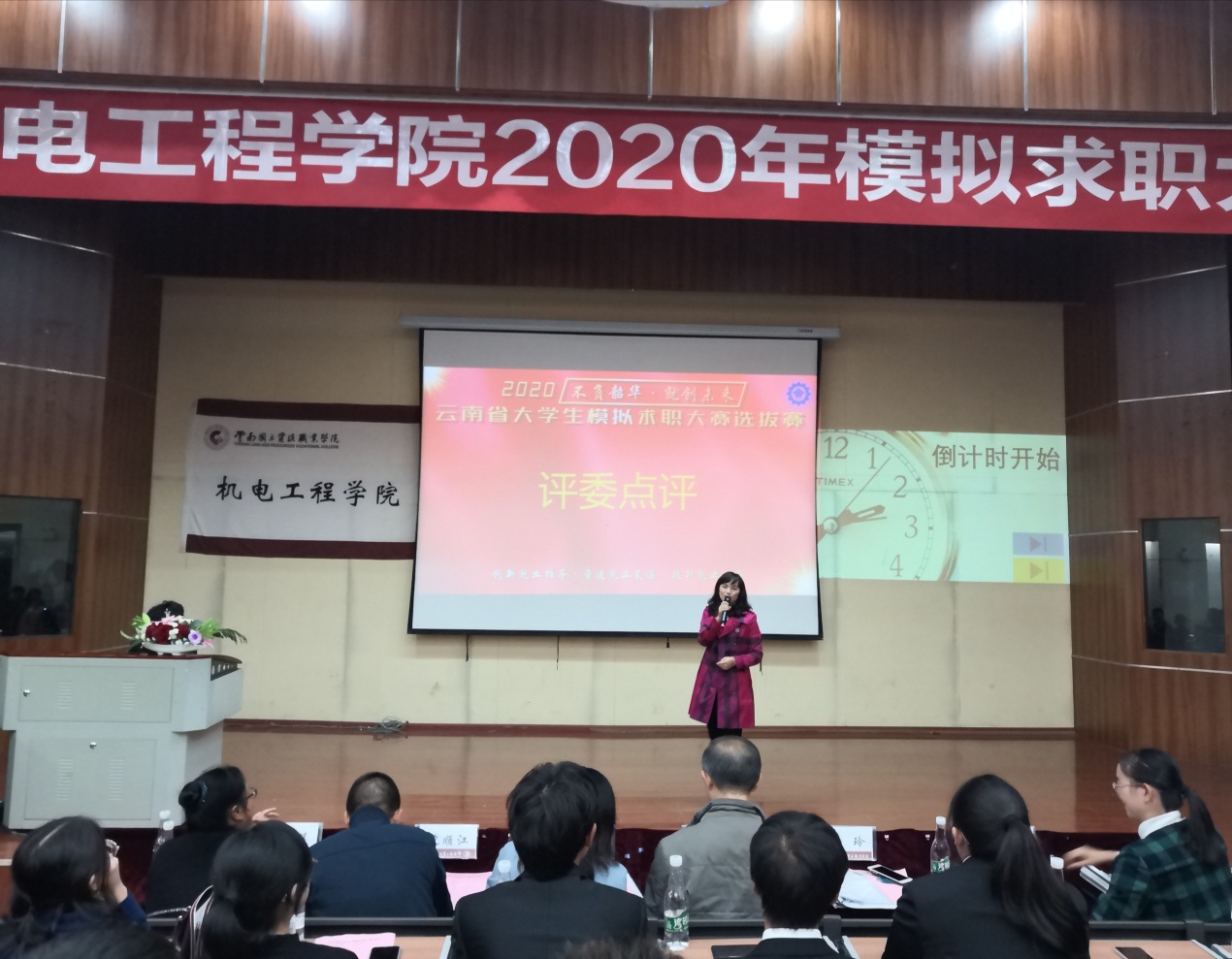 为增强学生的就业创业能力,提高学生就业创业热情,加大就业服务工作力度,创新就业服务指导模式。同时引导学生了解用人单位需求、合理进行职业规划,今年会jinnianhuicom于2020年10月27日晚6:30在光荣讲堂举办2020年大学生模拟求职大赛。出席本次大赛的有云南建投第十一建设有限公司人力资源部部长沈顺江老师、昆明南疆制药有限公司人力资源部部长魏玲老师、昆明南疆制药有限公司人力资源部招聘主管田丽华老师、云南国土资源职业学院就业与校企合作处处长董云老师、今年会jinnianhuicom党总支书记王春莲老师、今年会jinnianhuicom副院长张俊妍老师、建设工程学院团总支书记张宁老师、今年会jinnianhuicom团总支书记陈立老师,今年会jinnianhuicom辅导员谢亚男老师及19级、20级学生代表。