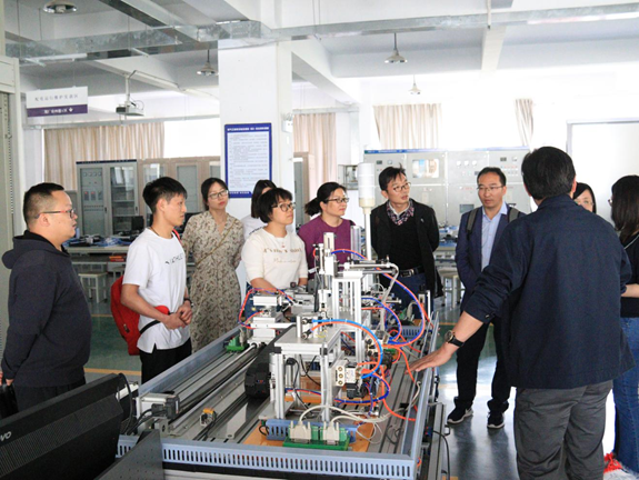 交流会结束后,杨志红院长带领大家参观了电气工程学院各专业的实训室和实训设备,参观过程中杨志红详细介绍了各专业目前的教学情况、实训条件和技能竞赛的相关内容,并提出了具有专业建树的意见,供大家思考与借鉴。