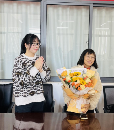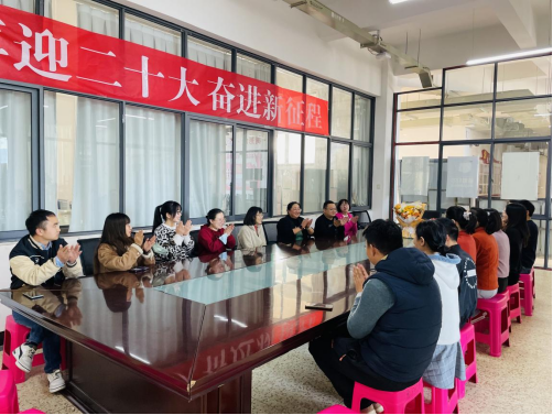 最后,裴倩倩老师代表学院全体师生为汪全美老师送上鲜花,全体在校教师一起合影留念,并祝汪老师退休快乐,身体健康,阖家幸福!