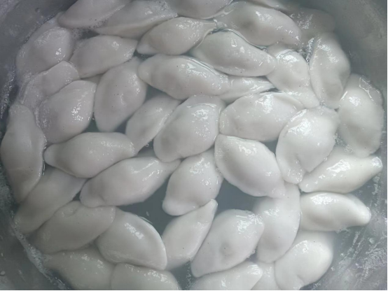 汤粑,有些地方方言又叫“猪儿粑”,它的材料主要是糯米面。在彝良,每年初一早上祭祀祖先后,吃第一餐必须是汤粑儿,寓意团团圆圆,丰衣足食。而汤粑的香甜味道,又喻示着生活能够甜甜蜜蜜。这天早上,大人们一早起来包汤粑,包好后,水煮沸下锅,汤粑浮出水面捞出来就可以吃了。