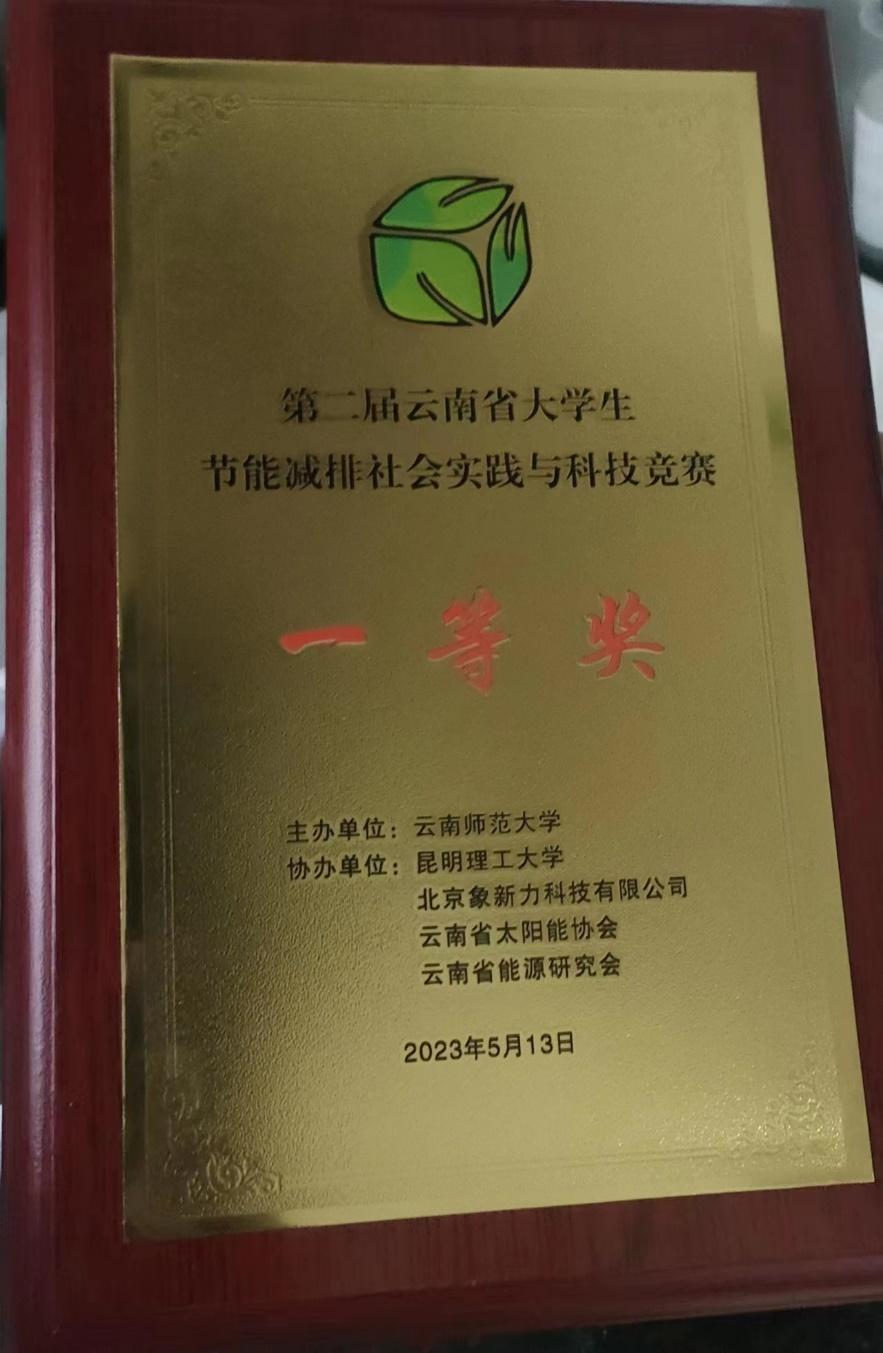 2023年5月13日,由云南师范大学主办,昆明理工大学、北京象新力科技有限公司、云南省太阳能协会和云南省能源研究会协办的第二届云南省大学生节能减排社会实践与科技竞赛圆满闭幕,我院参赛队伍作为全省唯一一个进入决赛的高职院校队伍斩获佳绩,荣获省级一等奖。