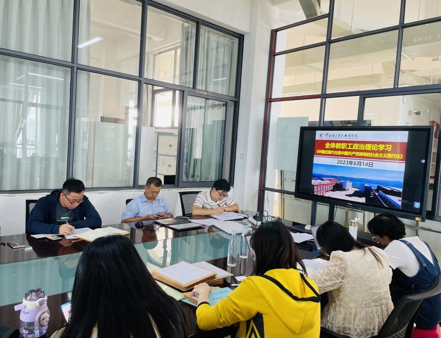 为深入学习贯彻党的二十大精神,抓好主题教育,凝聚奋进力量,6月14日中午13:00,今年会jinnianhuicom在明尚楼A201开展了2023年6月份第二次教职工政治理论学习会。本次政治理论学习会由学院党总支书记王春莲带领全院教职工学习了6月1日出版的第11期《求是》杂志发表的习近平总书记重要文章《中国式现代化是中国共产党领导的社会主义现代化》。