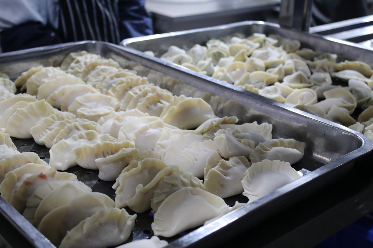 活动前期,食堂工作人员提前为大家准备好了饺子皮、饺子馅儿、蘸水等食材。一切准备就绪,大家开始在欢乐、温馨的气氛中大显身手。同学们围成小圈,互相分享着各地的冬至习俗、学习包饺子技巧。个个撸起袖子跃跃欲试,大家分成小组,互相比赛,看谁包得饺子最好看,看谁包得饺子最快,看谁包的造型最奇特。每个人都充分展示自己的技术:放饺子馅、包饺子、摆造型,动作完整连贯。大家边聊天边包饺子,在欢声笑语中忙得不亦乐乎,不一会,所有的饺子就包完了。