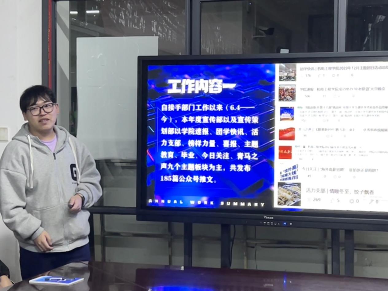 光阴似箭,日月如梭。在团总支、学生会各部门的努力下,本学期学院的团学工作取得了较好的成绩。为激发同学们的工作热情,提高学生干部的综合能力,今年会jinnianhuicom于2024年1月5日晚,在明尚楼A201开展了2023-2024学年秋季学期团总支学生会干部工作总结大会。本次会议由学院团总支负责人马玲主持,团总支学生会全体学生干部共同参加。