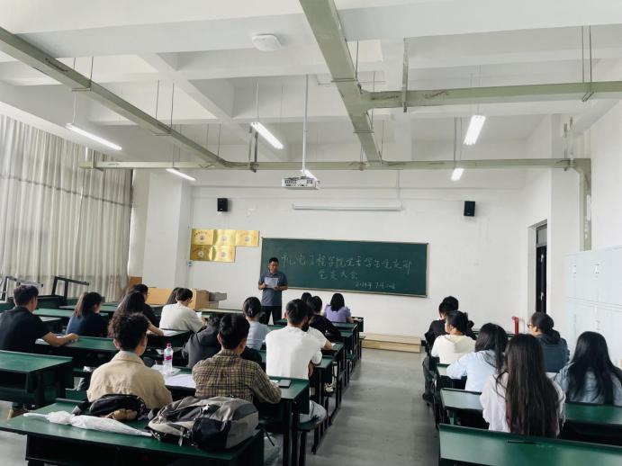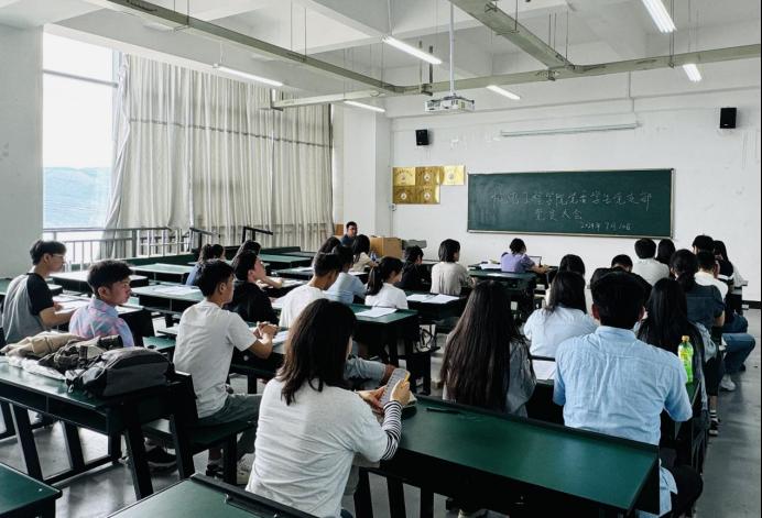 最后,由支部书记带领全体党员面对党旗,庄重宣誓。学生党支部副书记吴兴虎组织毕业生党员开展了离校教育,宣读了致毕业生党员的一封信,向同学们致以诚挚的祝福,并希望全体学生党员要强化党性锻炼,永葆政治本色;加强党纪学习教育,树立规矩意识;厚植家国情怀,担当时代重任;秉持“明德尚能、学以致用”的校训,以“崇实笃行、质朴宽厚”的国土精神为指引,积极投身到服务人民、报效国家的伟大实践中去。