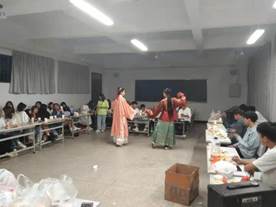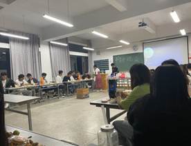 晚会现场布置得精致而温馨零食、水果、饮品应有尽有。中秋联谊晚会在大家的欢声笑语中正式拉开帷幕。首先是文艺节目汇演环节,同学们提前准备了文艺节目,纷纷登台表演,有歌曲、小品、舞蹈等,精彩纷呈,掌声不断,既展现了国土学子的青春风采,也体现了他们平时不为人知的另外的一面。第二部分是趣味小游戏环节,在主持人的带领下,现场气氛活跃,大家积极参加了猜灯谜,你划我猜等游戏并赢取了小礼品。欢快的时间总是短暂,在吉他弹唱《春风十里》的歌声中,联谊晚会拉下了帷幕。