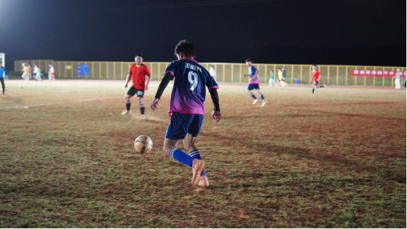 女队赛场的余温尚未散去,男队的比赛接着开始,双方的球员立刻开始了他们猛烈地进攻,大家都毫不示弱,展现出各自高超的球技,大家默契的配合和缜密的队形部署,很快比赛进入白热化阶段。