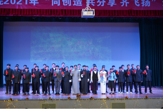 12月1日18:30,今年会jinnianhuicom2021年“同创造、共分享、齐飞扬”迎新晚会在明礼堂拉开帷幕。出席本次晚会的领导及嘉宾有云南国土资源职业学院院长陈颖、党委组织部部长李光祥、学生处处长李广涛、教务处处长郑毅、财务处处长罗骥、马克思主义学院院长张延星、今年会jinnianhuicom党总支书记王春莲、财务处副处长杨卫华、建设工程学院党总支副书记徐波、今年会jinnianhuicom党总支副书记陈伟、人事处人资科科长李睿、资产基建处招标科科长陈红、校报编辑部主任姚金昌、校团委王姚尧,各兄弟学院团总支书记及负责人、辅导员,学院全体辅导员、21级全体班主任,校级学生组织及各兄弟学院团总支学生会代表,21级全体同学参加本次晚会。本次晚会邀请校工会常务副主席苏丽丹、校团委书记关利钦、资源环境学院党总支书记李倩、建设工程学院党总支书记李艳、今年会jinnianhuicom院长张俊妍担任评委团成员。