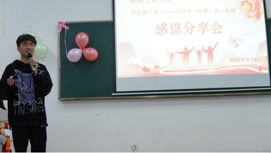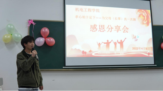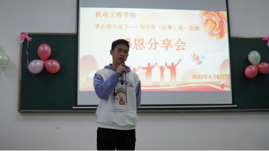 接着,21级各班代表依次上台进行分享交流,他们用最真实的情感讲述了为父母长辈洗脚时的内心活动,并分享了洗脚后的感悟,引起了台下听众的共鸣。同学们纷纷表示,在以后的时光里会多帮父母长辈做一些力所能及的事,同时,认真学习专业知识,提升专业技能以回报父母的养育之恩。