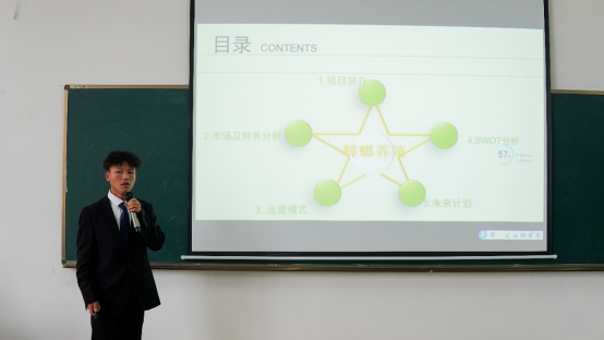 本次比赛分为科技创新和未来产业,乡村振兴和农业农村现代化、社会治理和公共服务,生态环保和可持续发展、文化创意和区域合作五个赛道,共有14个参赛队伍参加比赛。活动开始,各参赛队伍通过讲解PPT、播放演示视频、展示实物模型等方式,对创业背景、项目设计、营销策略以及财务分析等内容做了详细讲解。评委老师对项目的实施落地、资金来源、特色亮点等方面进行了提问。比赛现场气氛热烈,压力提问环节扣人心弦,选手们沉着冷静,从容不迫,用精彩答辩赢得场下观众阵阵掌声。