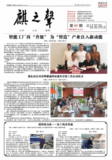 2022年5月31日,我院2019级智能控制技术2班张中原同学,在浙江嘉兴麒盛科技股份有限公司实习期间,表现突出,被浙江嘉兴麒盛科技股份有限公司企业内刊《麒之声》发文表扬。
