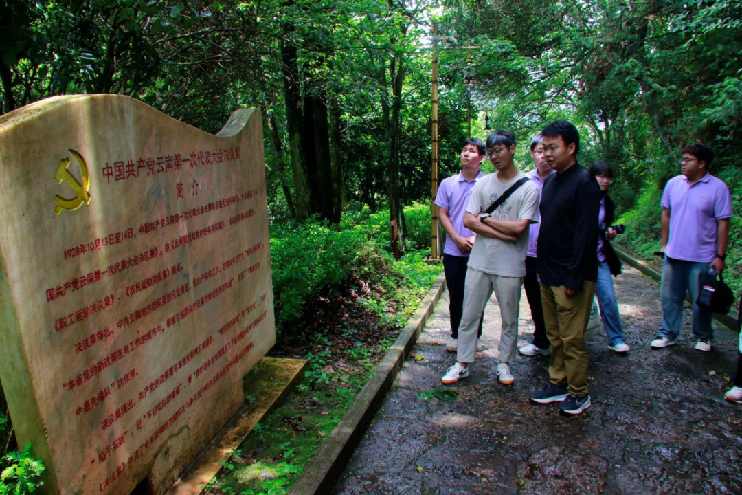 第二站是中共云南一大会址。1928年,中共云南第一次代表大会在此召开,点燃了滇南革命的火种。讲解员生动讲述了革命先辈秘密集会、谋划斗争的历史场景,队员们深刻体会到云南党组织革命历程的艰辛,进一步筑牢了理想信念根基。