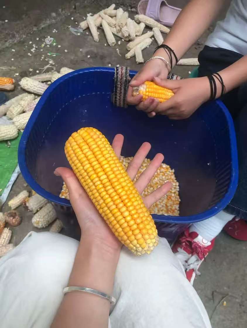 暑假,我回到家里帮父母分担农活。农忙时,我除了做饭洗碗,还去稻田边的玉米地干活。钻进齐腰深的玉米丛掰玉米,胳膊易被叶子划伤,正午后背发烫,顽固的玉米得用尽全力才掰得下。一天下来,手指发黄、腰也酸。晒玉米要跟天气赛跑,我费力把玉米抬上楼顶摊开,得常翻匀还留意天气,乌云来时又要慌忙收玉米,一刻不敢松。这假期农活虽累,却让我感受到此前兼职没有的踏实。