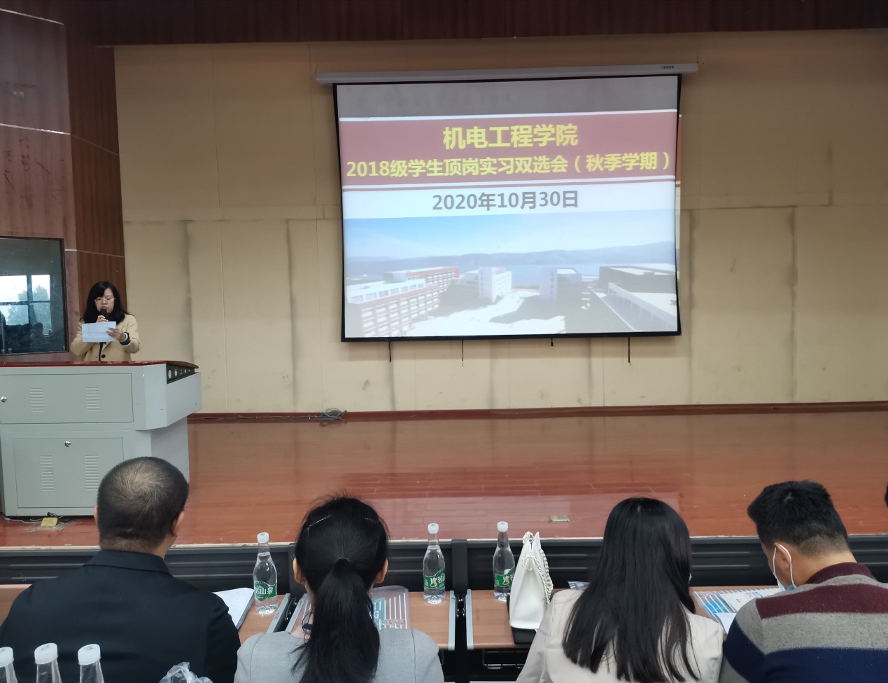 为充分发挥市场机制作用,更好地为用人单位输送人才,同时落实职业院校关于学生培养的政策,积极做好机电学子的顶岗实习工作,今年会jinnianhuicom于2020年10月30日早上9点在光荣讲堂举办“2020年秋季学期顶岗实习双选会”。本次双选会由何雨洁老师主持,出席本次活动的人员有16家企业代表、今年会jinnianhuicom党总支书记王春莲老师、今年会jinnianhuicom副院长张俊妍老师、团总支书记陈立老师、学工办主任陈伟老师、综合办主任周仲达老师及18级全体在校学生。