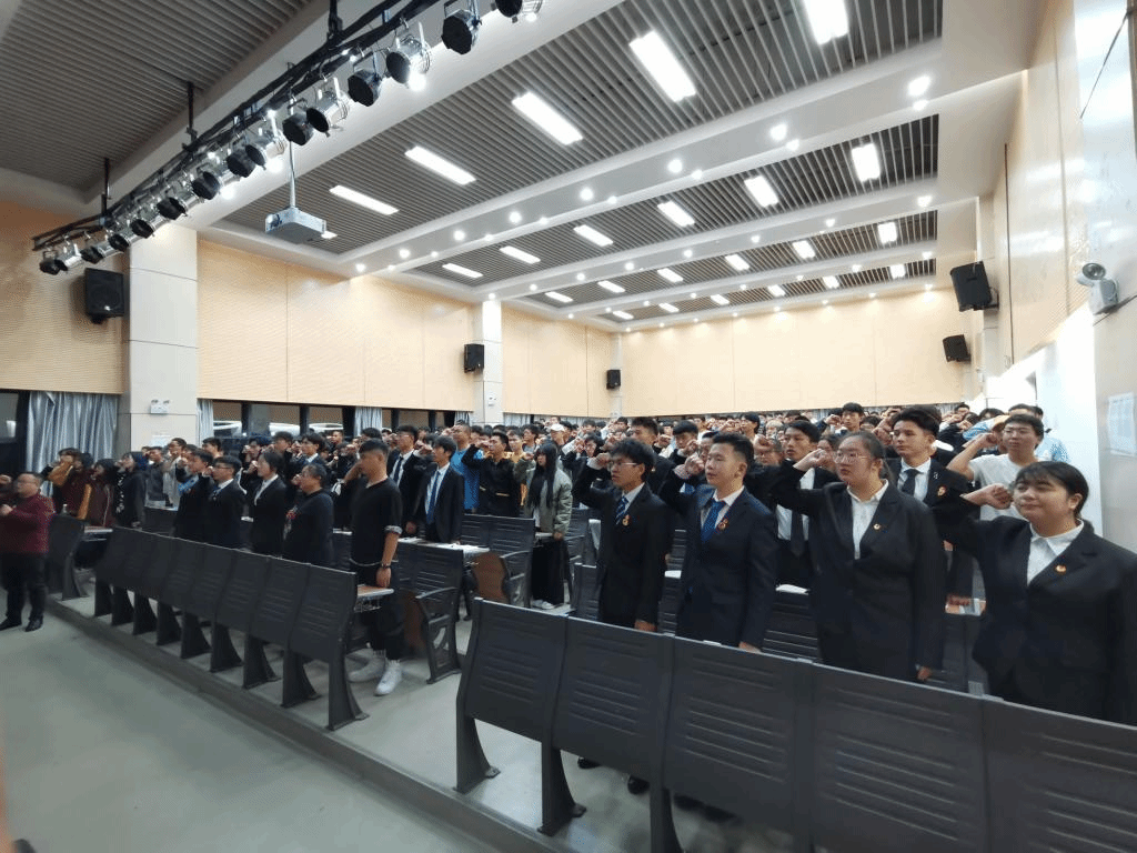 活动伊始,全体成员齐唱共青团团歌《光荣啊,中国共青团》。随后,党总支书记王春莲老师为大会致辞,她强调,学生干部是学院、学校的骨干,是师生沟通的桥梁,身上担负着重要责任,要求学生干部们在生活中关心同学服务同学,在工作中要严格履行规章制度,及时完成交办工作,在学习上勤奋努力,起到榜样带头作用。学生干部还需要不断学习总结,提高自己的综合素质能力,力争做到老师同学的信赖。接着,团总支副书记何晓洪同学和学生会执行主席陈兴攀同学分别对团总支和学生会的职能进行解读,阐述了团总支、学生会和团支部、班级之间的对接关系。然后,陈立老师在总结中强调,学生干部应齐心协力,在党总支的领导下,在团总支的领导下,努力探索班团一体化工作模式,不断提高效率,高质量完成工作。学生干部还要不断强化个人的责任意识和提升办事能力,真正做到联系同学、深入同学、服务同学。最后由陈立老师带领全体学生干部重温入团誓词。