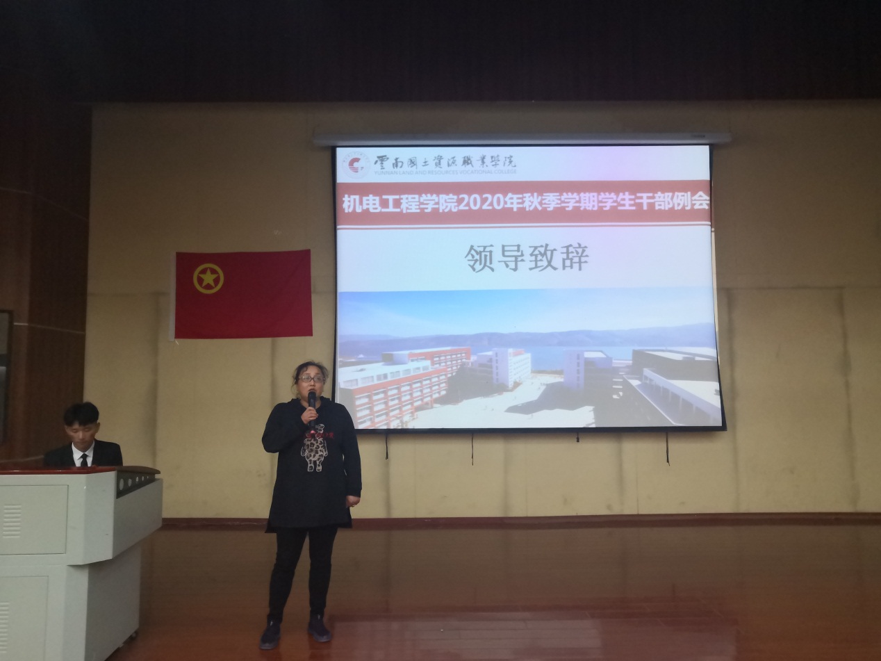 为加强学生骨干培养,强化学院与班级两级联动工作模式,落实班团一体化改革方案,2020年11月1日18:30,今年会jinnianhuicom在光荣讲堂召开2020年秋季学期学生干部大会,出席本次会议的有今年会jinnianhuicom党总支书记王春莲老师、今年会jinnianhuicom团总支书记陈立老师、以及全体学生干部。