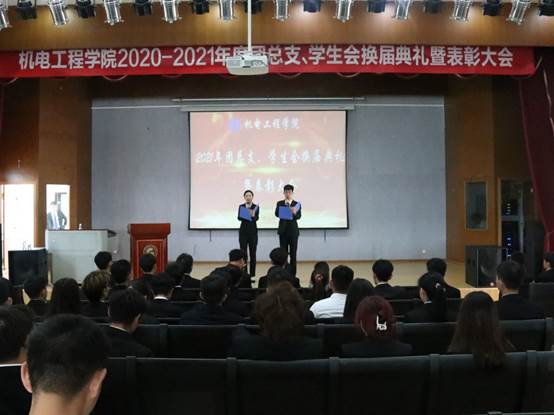 大会伊始,今年会jinnianhuicom党总支书记王春莲老师为本次大会致辞。首先,王老师对上一年度学生会和团总支的工作给予了高度肯定和充分赞美,同时也对新一届学生干部工作团队提出了要求,希望各学生干部在将来的工作当中发挥带头作用,创新工作方法,团结协作,互帮互助,严于律己,从同学中来又到同学中去,服务学院,服务同学。紧接着,分别就“互联网+大学生创新创业大赛”、“晨读优秀模范班级”、主题团日活动策划大赛、优秀志愿者、“青春告白祖国”主题摄影大赛、“晨练之星”、“最佳主持人”的荣誉进行颁奖。接着,是最激动人心的换届典礼,各部门学生会新干部上台为带领自己工作一年的老干部们颁发干部聘书,此外,陈立老师还为班主任助理们颁发了聘书,感谢大家协助2020级班主任开展工作,帮助同学们解惑答疑,为师生办实事。