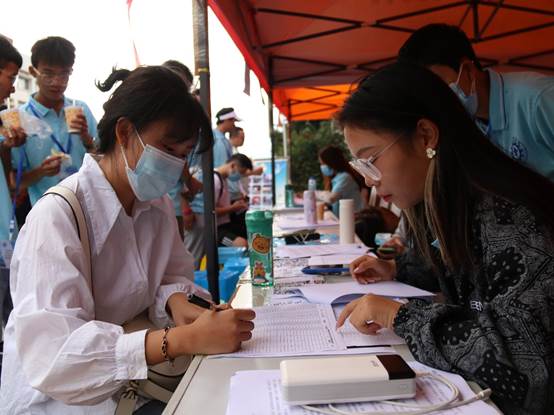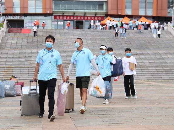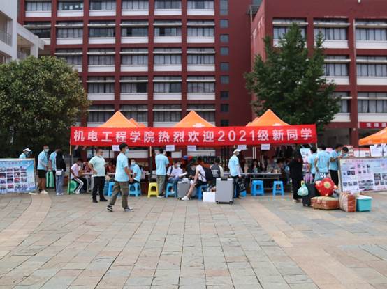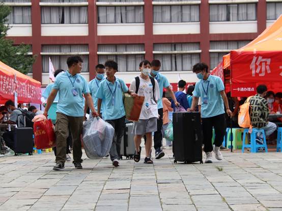 志愿者们指导新生完成加班群、填个人信息、关注学院公众号等流程,回答新同学们对学校生活、学院专业存在的疑问。志愿者们不怕苦、不怕累,在烈日下、在风雨中,来回穿梭在校园里,为新同学们搬运行李、指引带路、介绍学校的教学楼、食堂、宿舍、超市等位置。
