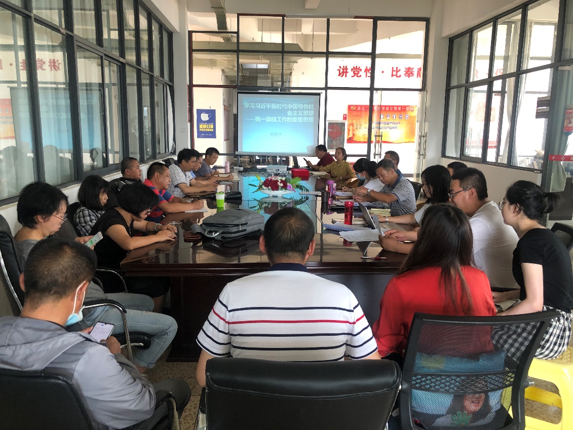 会议第一项,由副校长熊继华同志为大家讲党课,党课主题是“深入学习和领会习近平新时代中国特色社会主义思想——统一战线工作的重要思想”。熊继华同志从“习近平关于新时代统一战线理论的新发展、习近平关于加强和改进统一战线工作的新部署、习近平关于加强和改进统一战线工作的新要求”三个方面阐述了新时代、新形势下统战工作的重要意义及开展方法,分享了各个不同历史时期国家的统战工作开展情况,并强调统一战线初心是坚持大团结、大联合,团结一切可以团结的力量、调动一切可以调动的积极因素,为实现党和国家的宏伟目标而团结奋斗。本次党课主题鲜明、重点突出、内涵丰富、条理清晰,全体教师纷纷表示对统战工作有了更深的认识。