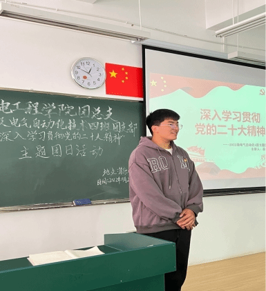 11月21日中午,2022级电气自动化技术4班团支部于在笃行楼501召开十一月主题团日活动。本次主题团日活动由班级团支书蒋知言主持,全班同学共同参加了此次活动。