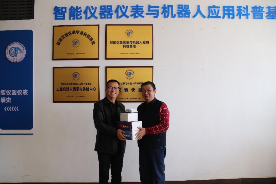 寸建平、方原柏共同为“智能仪器仪表与机器人应用科普基地”揭牌,并进行捐赠仪式