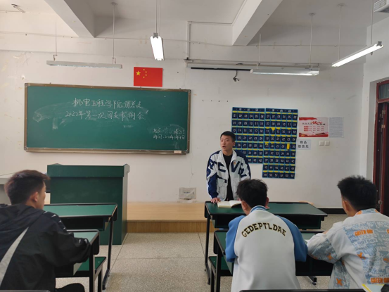 接下来,由团总支副书记王正当对青年大学习的学习情况进行通报,并对青年大学习的相关要求进行了详细说明。他要求团干部在今后的工作中要认真负责,严格落实学校、学院安排的任务,组织好团支部学习活动。