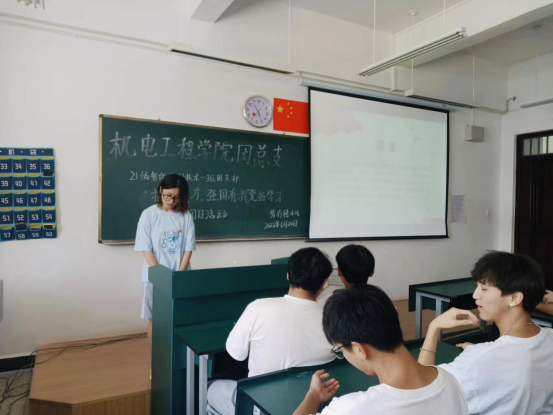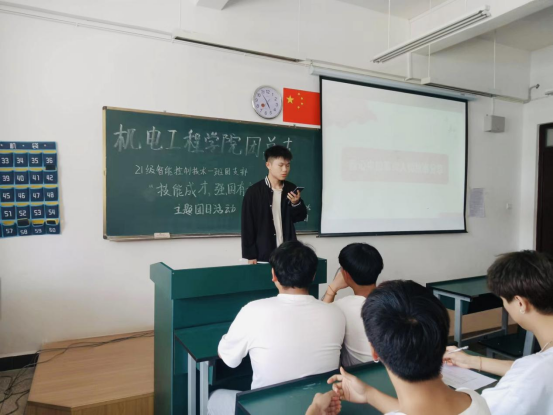 为深入学习贯彻习近平总书记在庆祝中国共产主义青年团成立100周年大会上的重要精神,号召我班全体成员成为有理想、有本领、有担当的新时代青年,6月20日中午,2021级智能控制技术1班开展了“技能成才,强国有我”主题团日活动。本次活动由2021级智能控制技术1班副班长胡倩主持,2021级智能控制技术1班全体同学共同参与。