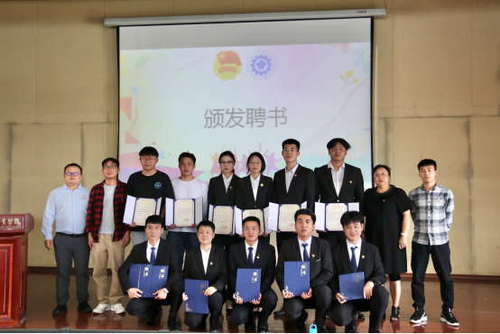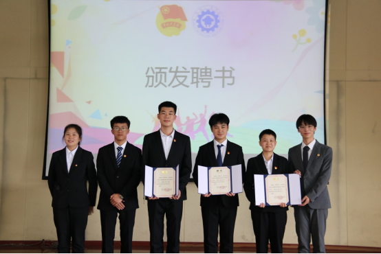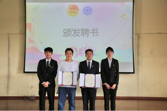 第三项议程:颁发聘书。2021级预备干部为2020级学生干部颁发聘书,王春莲老师、陈伟老师、陈立老师和全伟东老师为班级助理颁发聘书。