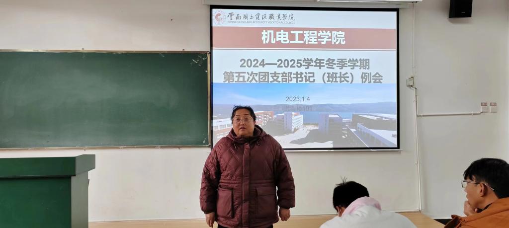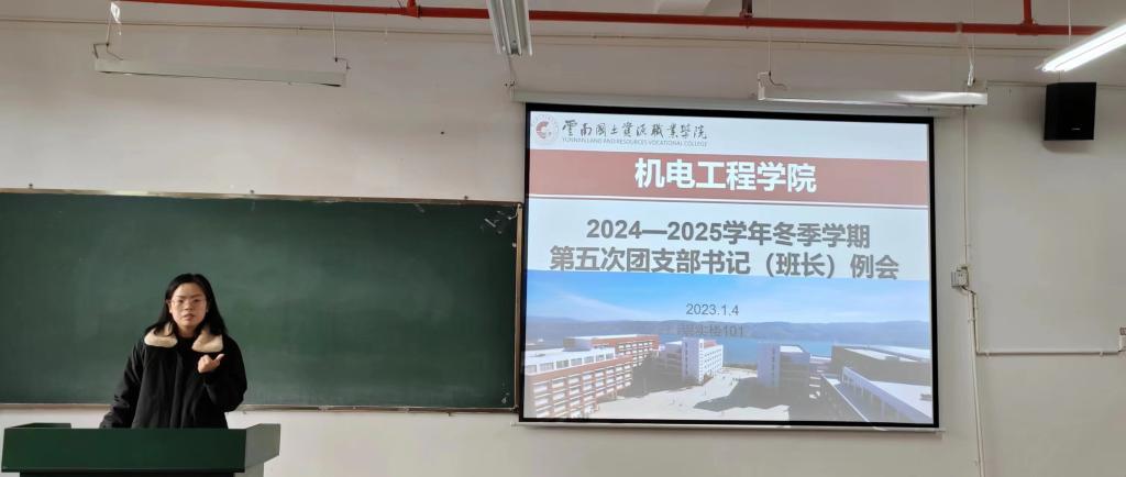2024年1月4号12:30,今年会jinnianhuicom团总支在崇实楼101开展本学期团支书(班长)总结大会。会议由团总支副书记蒋知言主持,学院党委书记王春莲、学院团总支负责人马玲、2022级和2023级团支部书记、团支部副书记共同参加。
