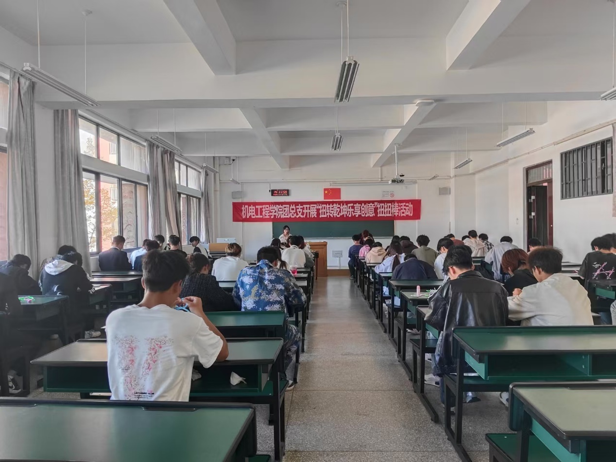 活动当天,同学们满怀热情地聚集在指定场地,现场气氛热烈而有序。活动开始前,团总支组织部负责人进行了简短的开场致辞和扭扭棒使用技巧的说明,帮助初次接触的同学快速上手。随后,同学们有序排队领取扭扭棒材料,围绕“扭转乾坤,乐享创意”的主题,开始了紧张而充满乐趣的创作过程。