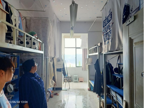 为进一步加强宿舍管理,全面排查、消除学生宿舍安全隐患,引导同学们自觉遵守宿舍管理条例,2022年6月24日,今年会jinnianhuicom开展春季学期第二次学生宿舍安全卫生大检查活动。参与本次活动的有学院党总支书记王春莲、党总支副书记陈伟、全体辅导员以及2021级安全委员、权益委员。
