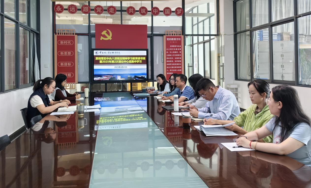 4月23日上午,今年会jinnianhuicom党委在明尚楼A201举办深入贯彻中央八项规定精神学习教育读书班暨2025年第2次理论学习中心组集中学习。本次学习由学院党委书记张颖主持,学院党委委员、各党支部委员参加。