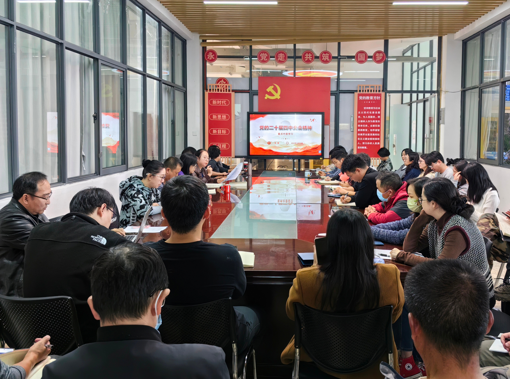 张颖书记强调,在全会精神的指引下,我们要紧密团结在以习近平同志为核心的党中央周围,坚定发展信心,将宏伟蓝图转化为学院建设的生动实践。要以奋勇前行的姿态,深化教育教学改革,将发展重点切实融入“开创中国式现代化建设新局面”的进程之中,为教育强国、科技强国、人才强国建设贡献不可替代的机电力量。