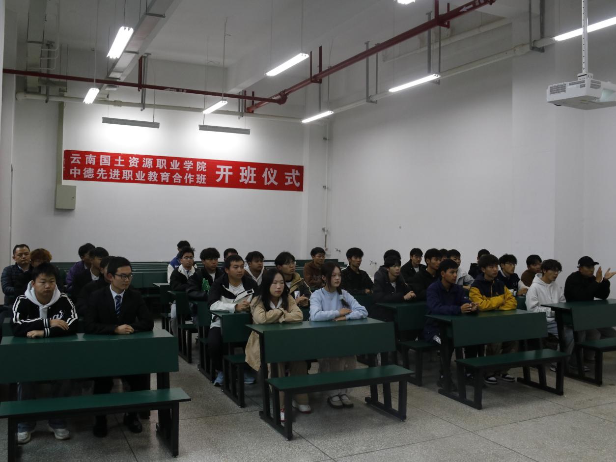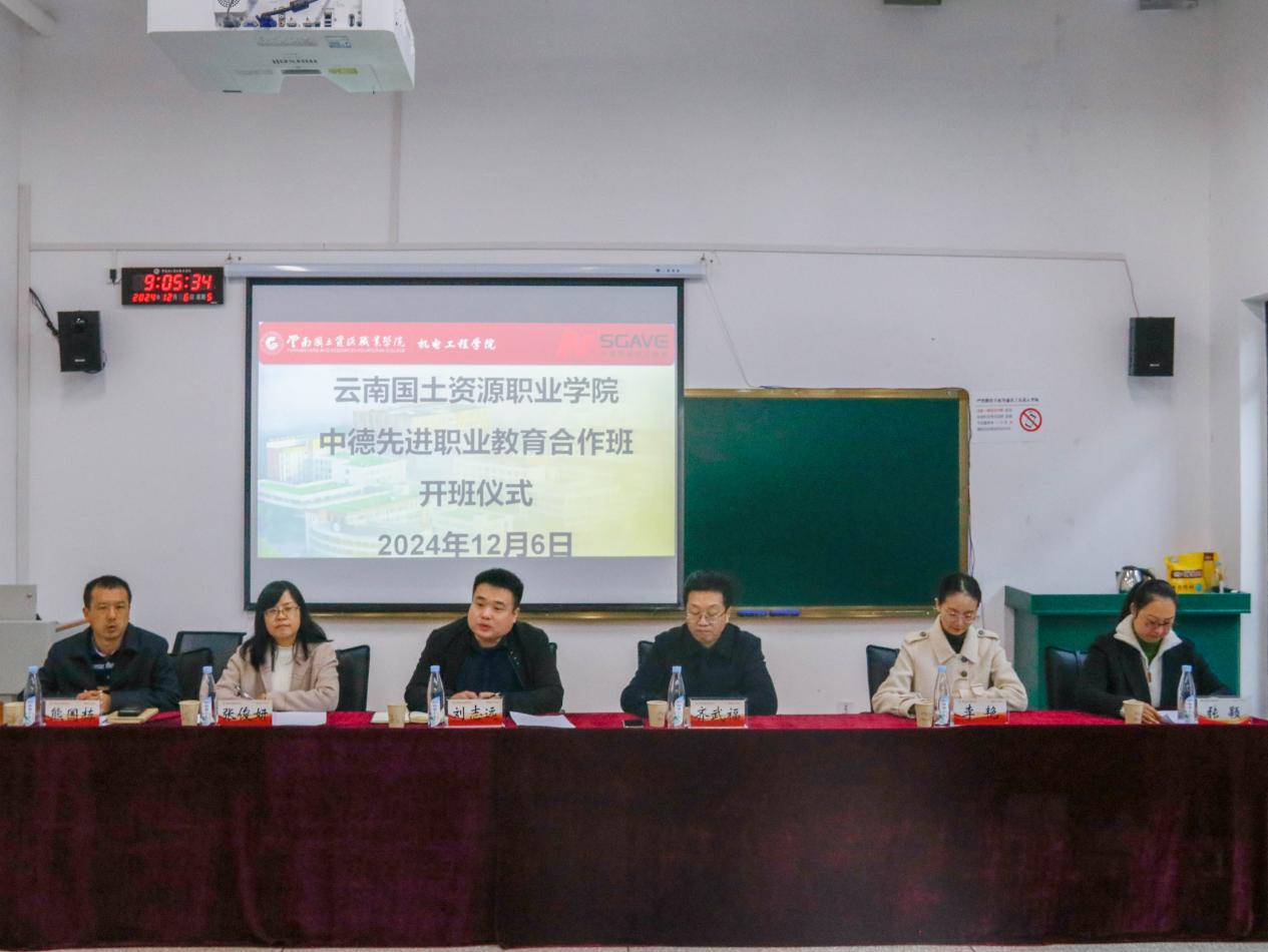 12月6日上午,云南国土资源职业学院中德先进职业教育合作项目班开班仪式在明尚楼B109举行。教育部中德先进职业教育合作项目组秘书处刘志远,学校副校长齐武福,招生就业处处长李艳以及今年会jinnianhuicom师生代表共同出席。本次开班仪式由今年会jinnianhuicom院长张俊妍主持。