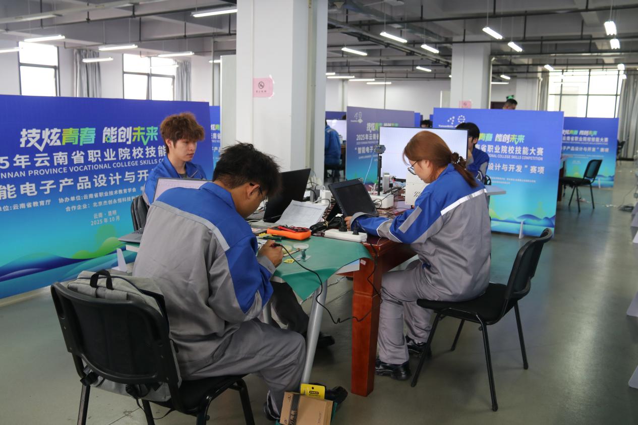 10月17-18日,由云南省教育厅主办、云南省职业技术教育学会协办的2025年云南省职业院校技能大赛“智能电子产品设计与开发”赛项(高职组)在我校阳宗海校区举办,来自全省12所高职院校的20支参赛队伍共80名参赛选手参加本次大赛。