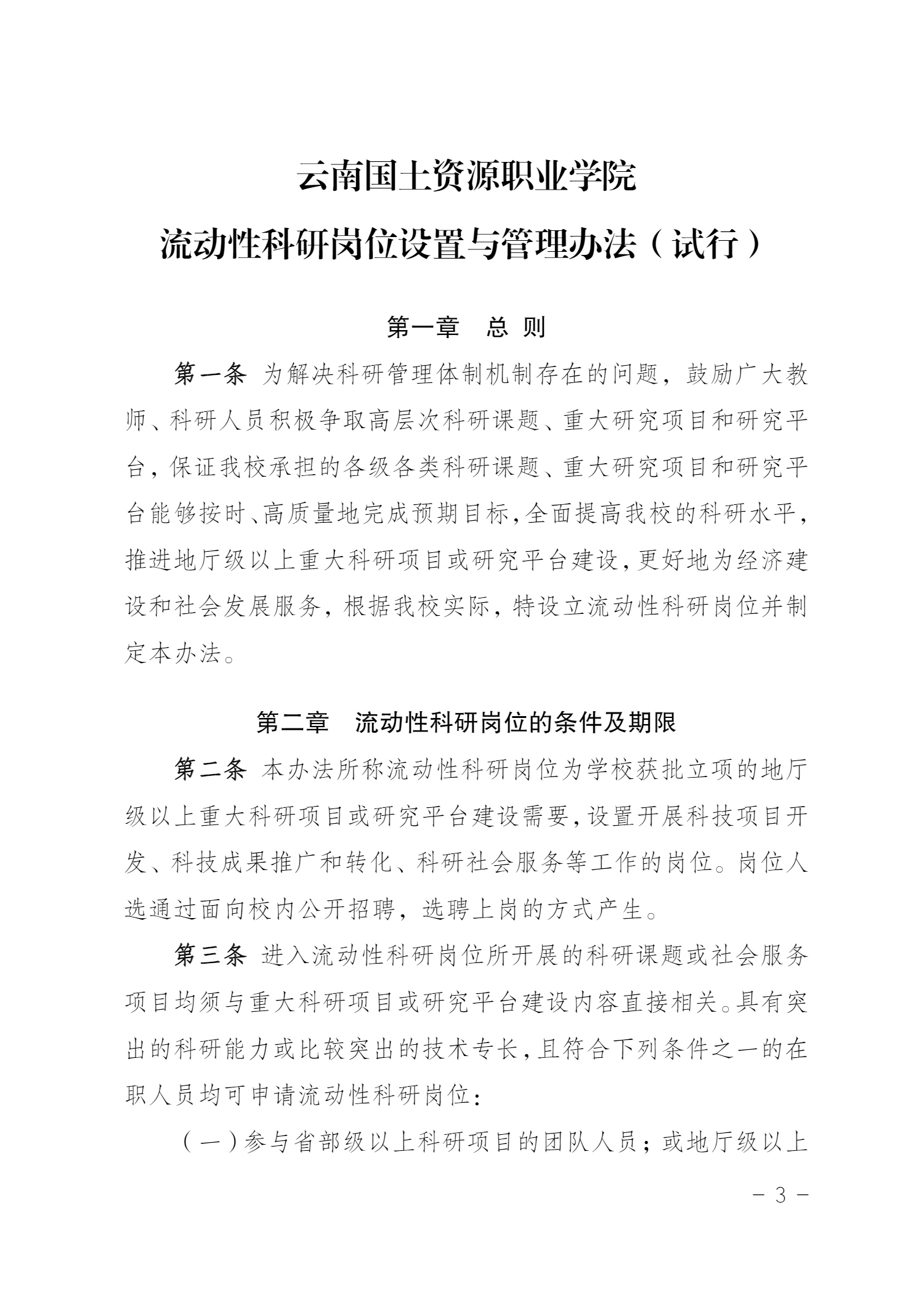 云南国土资源职业学院 流动性科研岗位设置与管理办法(试行)