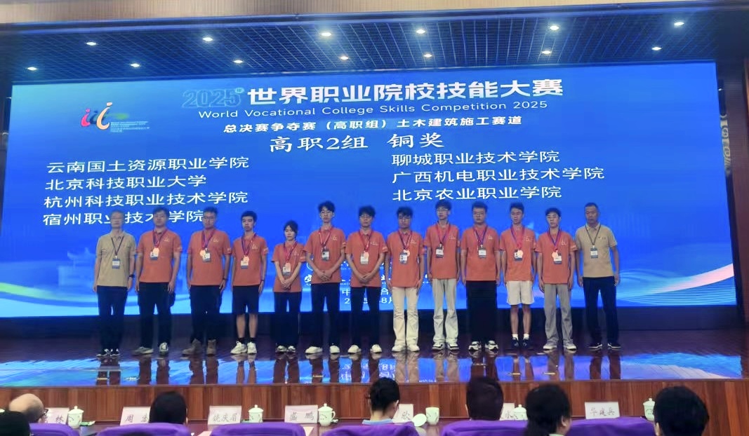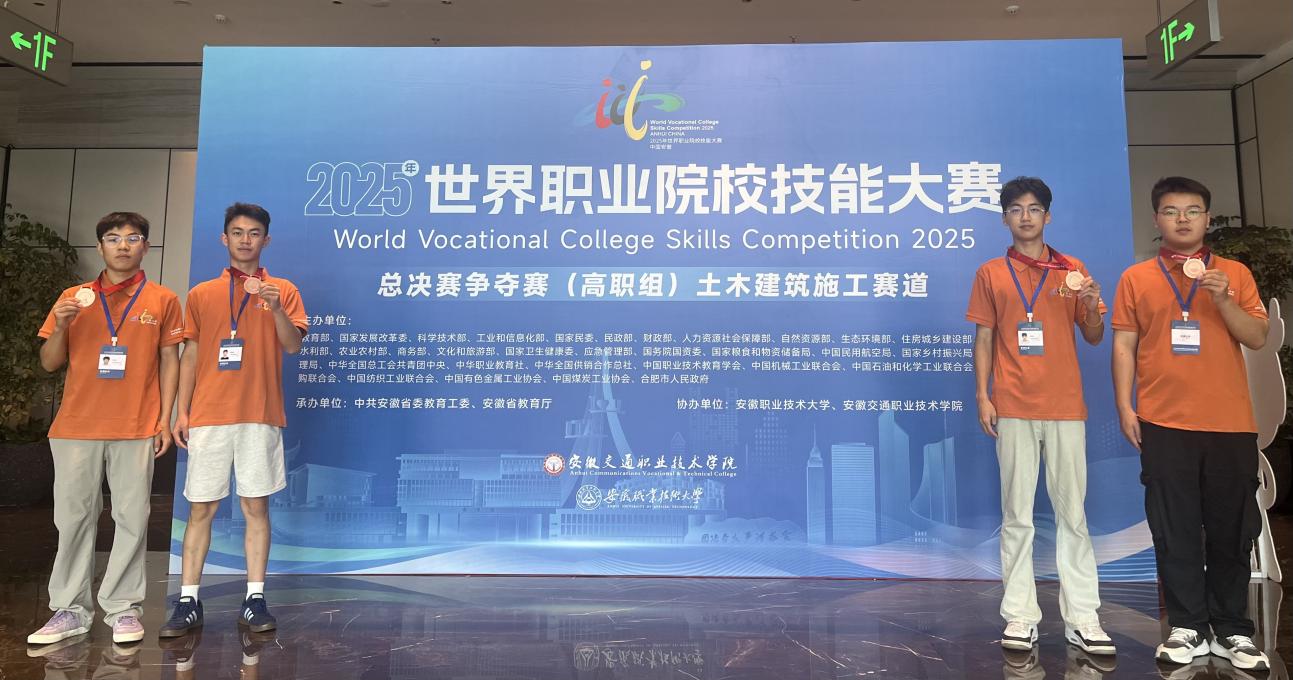 8月27日至30日,由安徽职业技术大学与安徽交通职业学院联合承办的2025年世界职业院校技能大赛总决赛(高职组)土木建筑施工赛道比赛圆满落幕。由我院安全消防专业群选派的学生团队(李钧杰、孔令富、殷良霄、邱洪键)在冯溪阳、刘芳芳老师的指导下,首次参赛勇夺大赛铜奖,实现我院在该项国际赛事土木建筑施工赛道中的历史性突破!